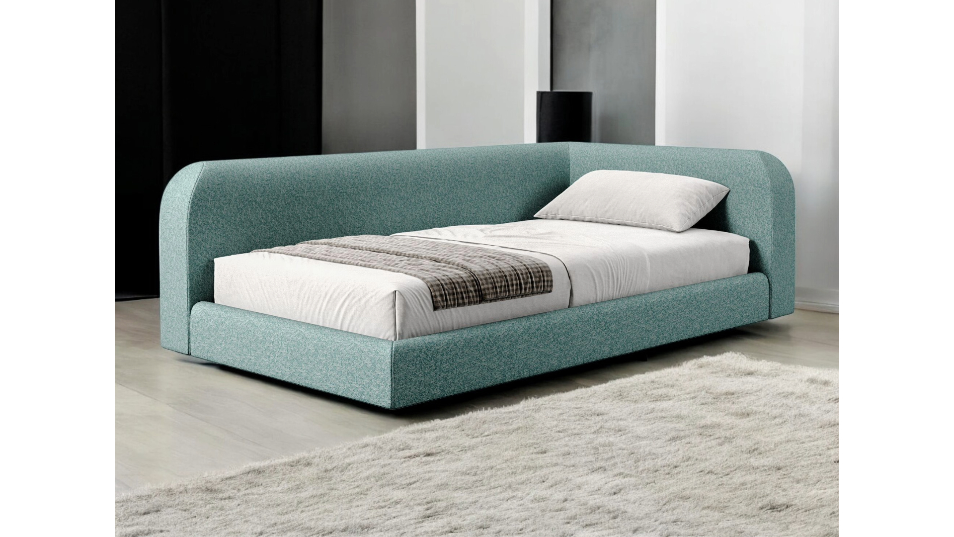Pat tapitat de copii pe colt Pluto cu somiera fixa sau rabatabila