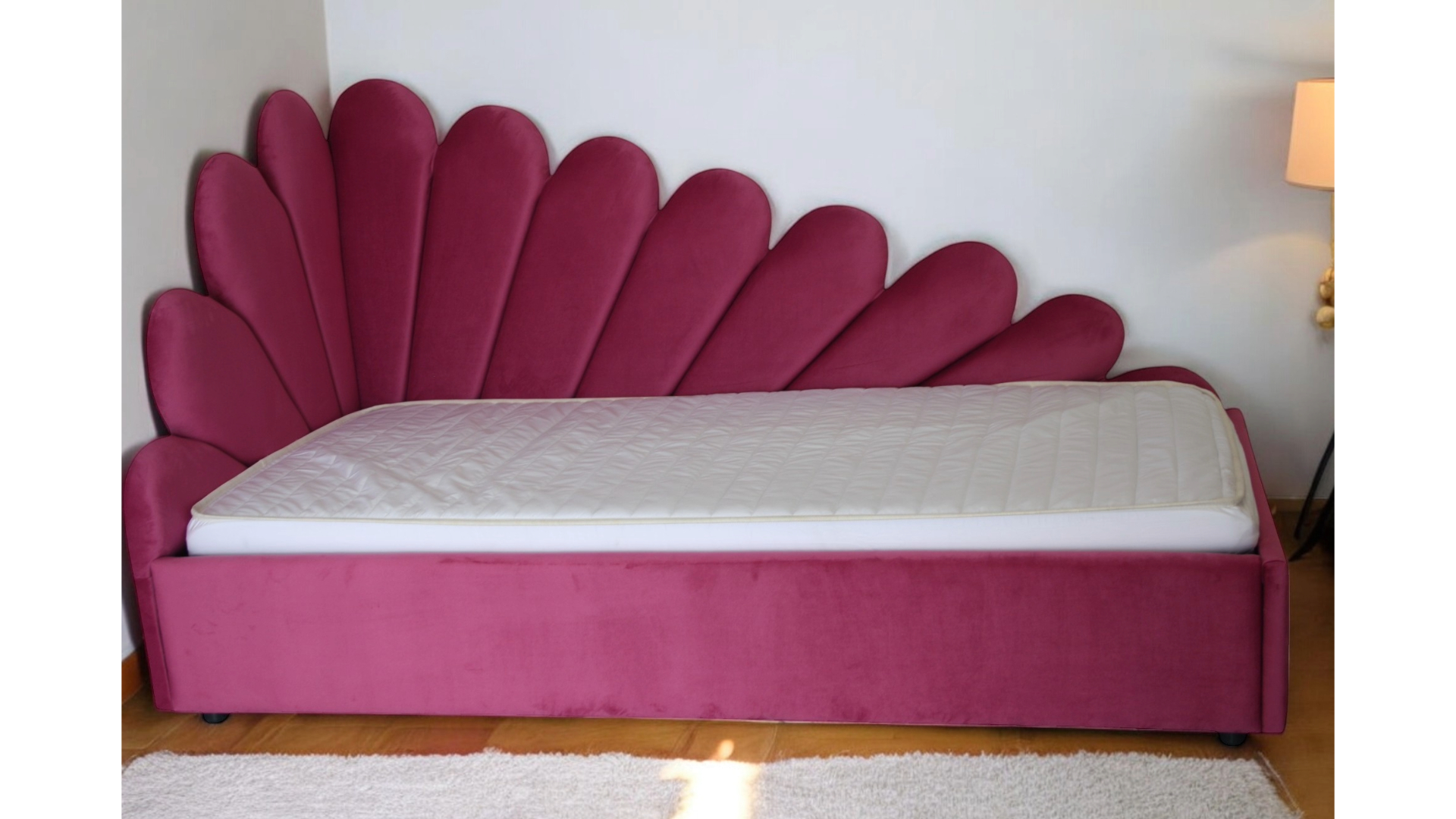 Pat tapitat copii pe colt Flower cu somiera fixa sau rabatabila