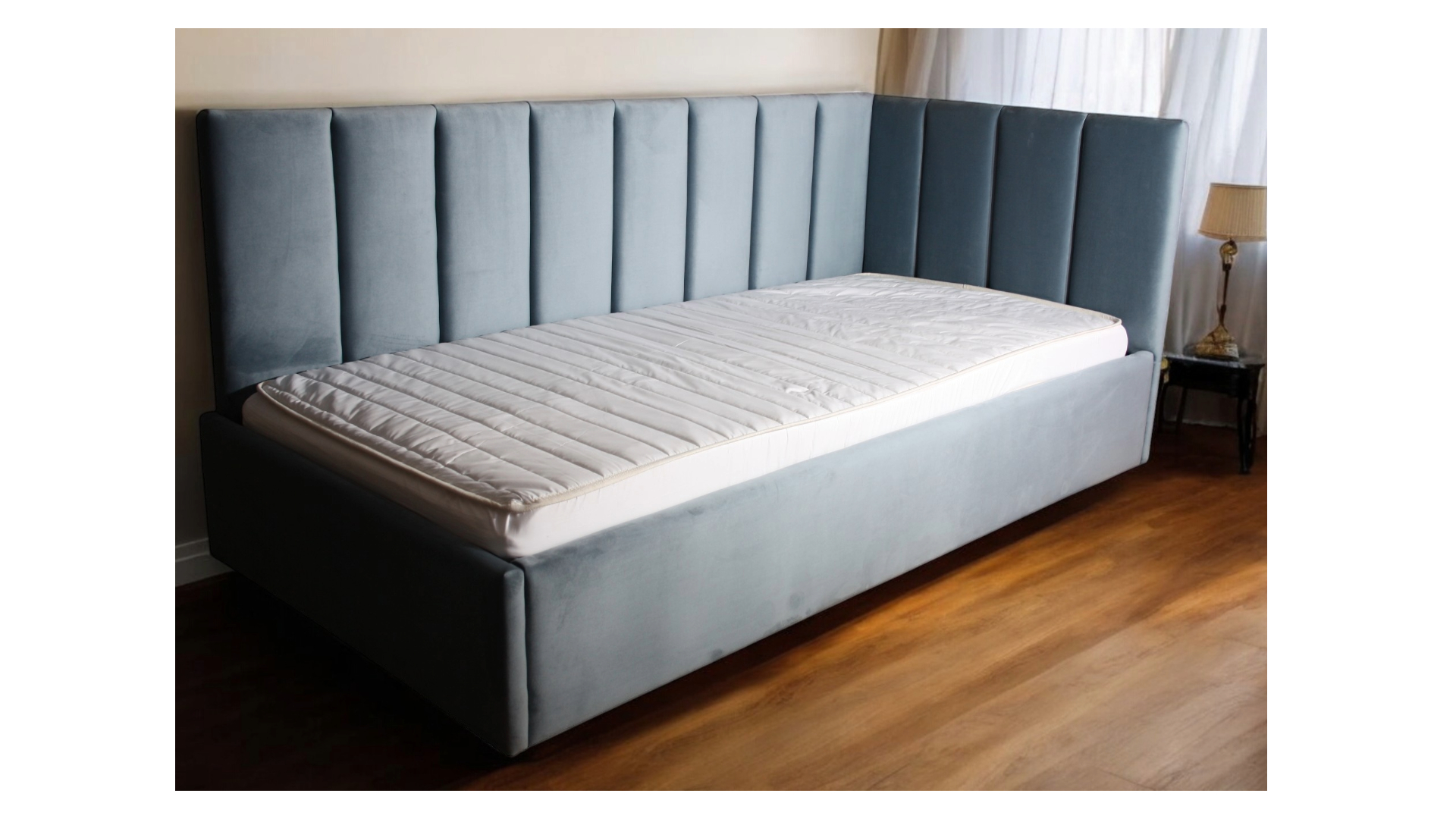 Pat tapitat copii pe colt Matei cu somiera fixa sau rabatabila