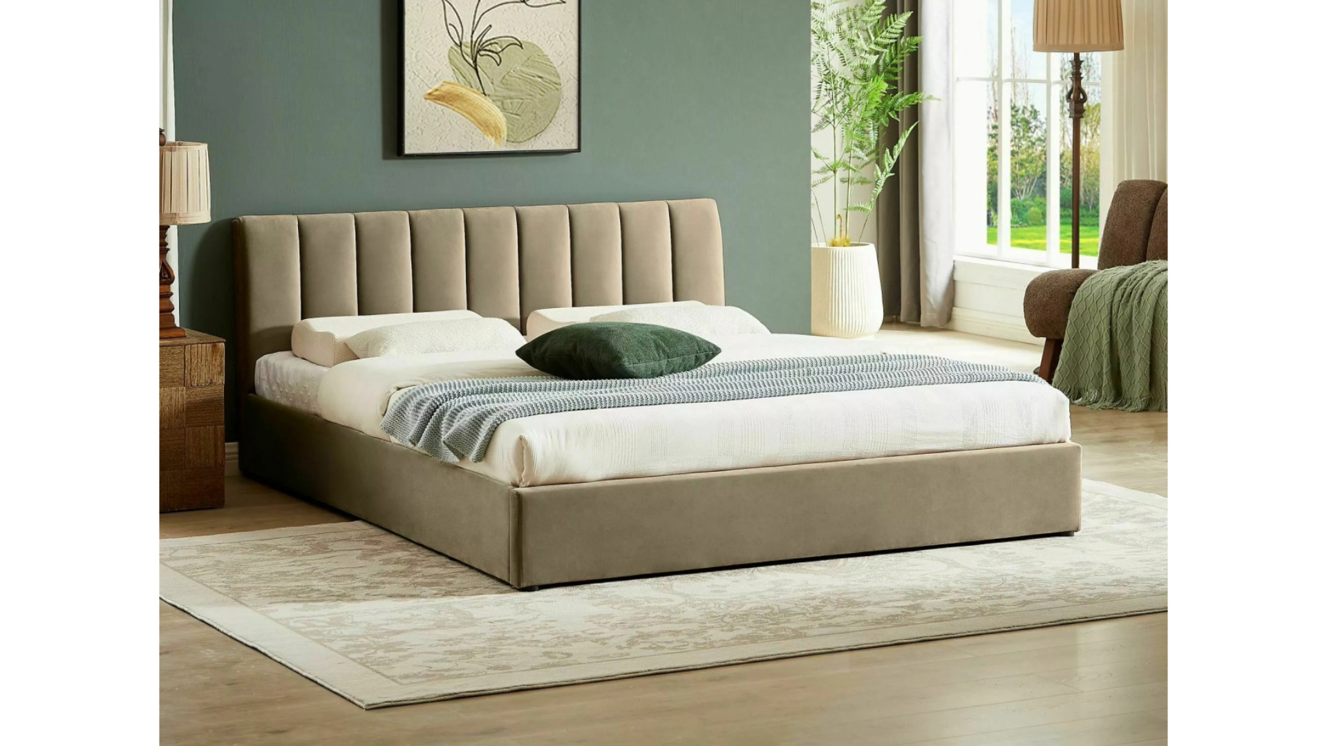 Pat tapitat Miriam cu spatiu depozitare si somiera rabatabila