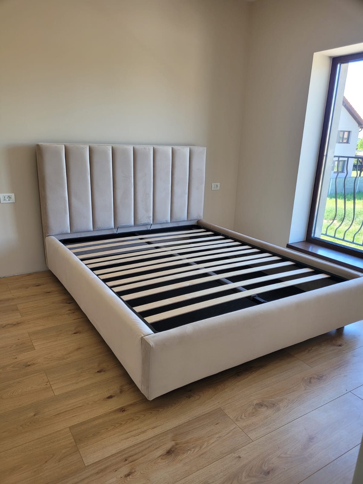 Oferim o versiune personalizata a patului, cu somiera rabatabila cadru metalic 40x30x1.3 si lamele lemn 64×8 mm.